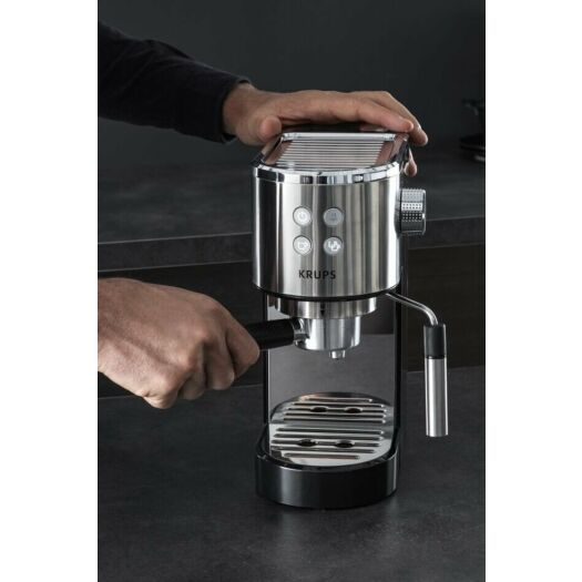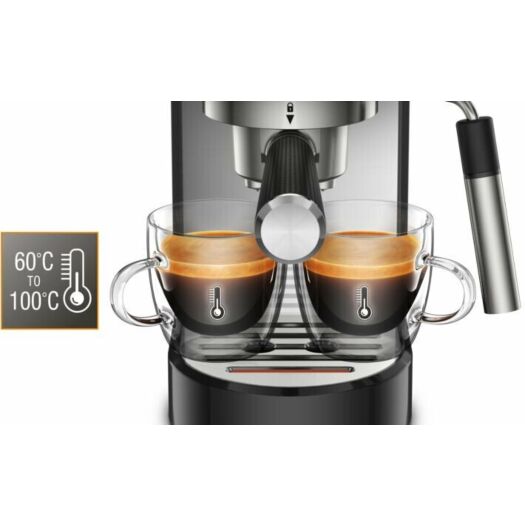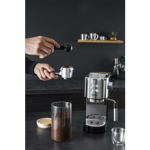 Сучасна, компактна еспрессо-машина з високоякісної нержавіючої сталі для ідеального поєднання міцності і стилю. Інтуїтивно зрозумілий інтерфейс з автоматичною зупинкою подачі води для ідеального еспрессо з пінкою.