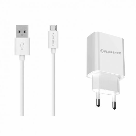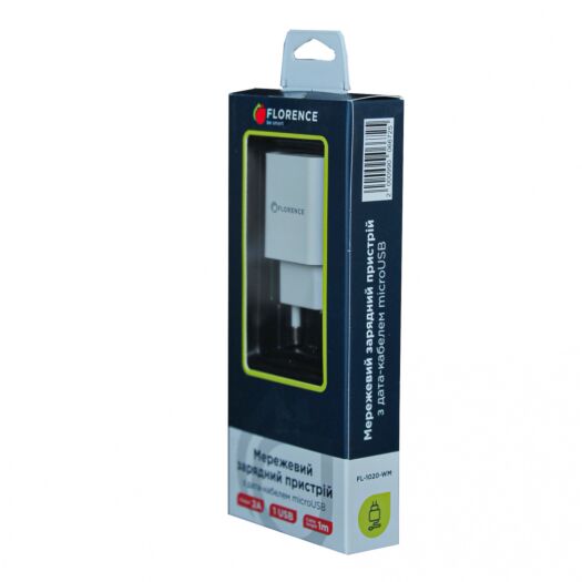 ОписМережевий зарядний пристрій Florence 1USB 2A + microUSB White (FL-1020-WM)