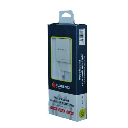 ОписМережевий зарядний пристрій Florence 2USB 2A + microUSB White (FL-1021-WM)