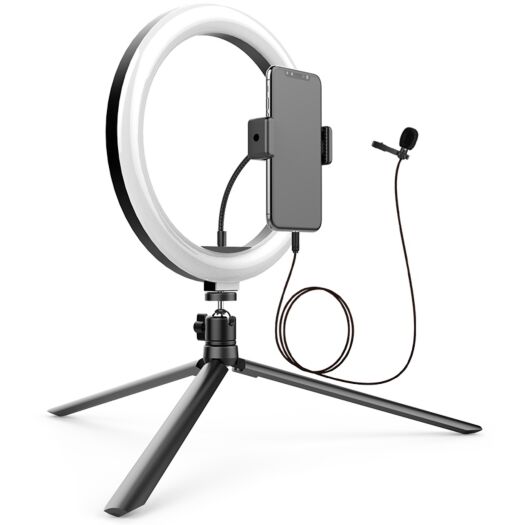 | Комплектація | Спеціальна LED лампа-кільце Штатив-трипод Провідний мікрофон з прищіпкою Гнучкий холдер для смартфона Пульт дистанційного керування - старт / стоп зйомки |