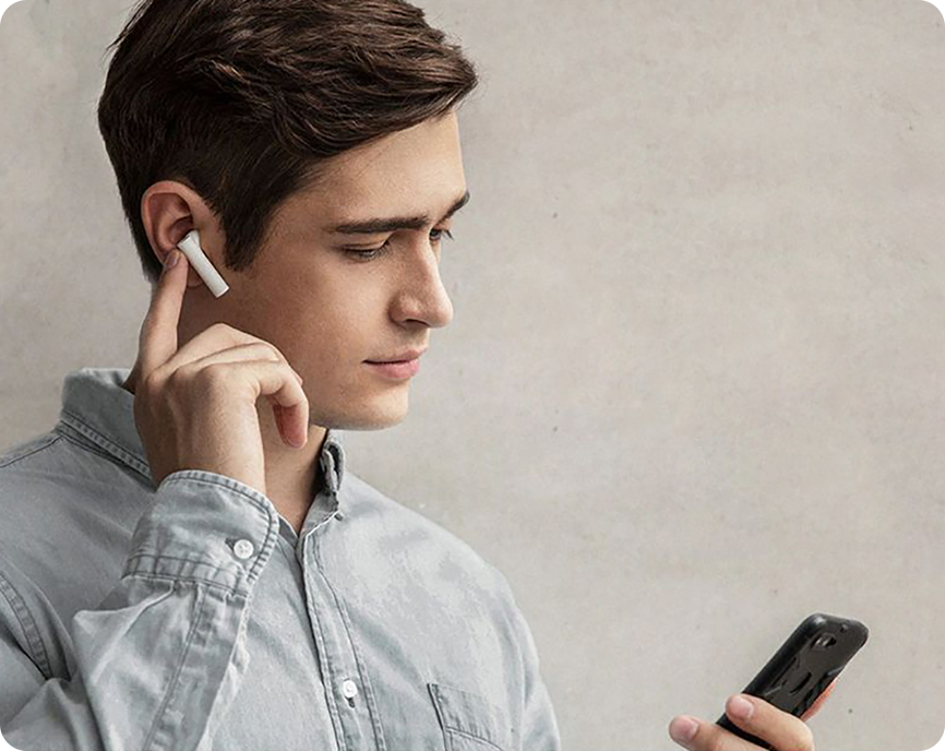 Xiaomi Mi Air 2 True Wireless Earphones оснащені інфрачервоним датчиком, який стежить за положенням навушників і ставить відтворення на паузу, якщо ви витягаєте навушник з вуха.