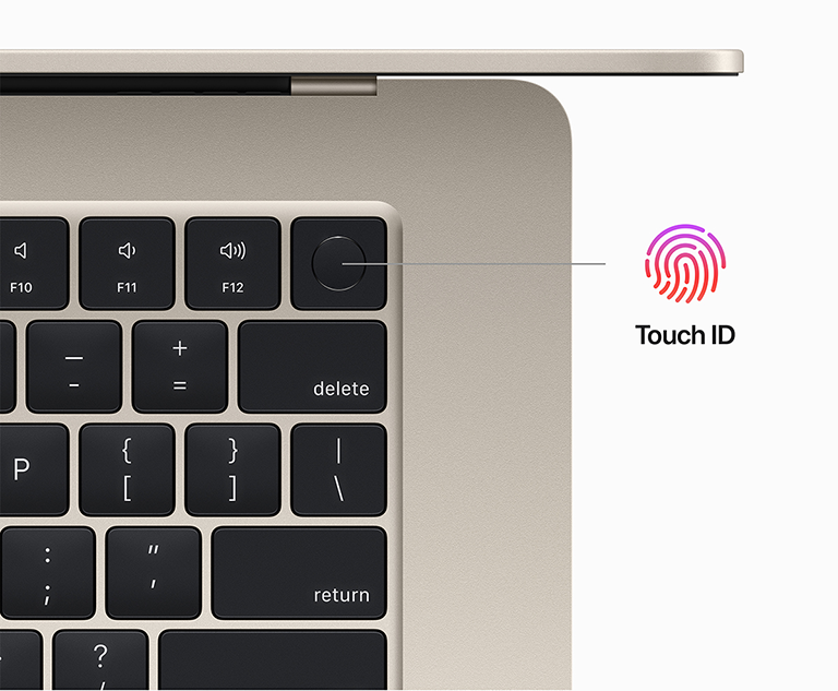 Клавіатура Magic Keyboard із підсвічуванням і датчиком Touch ID, що дає змогу швидко й безпечно розблоковувати Mac та оплачувати покупки.