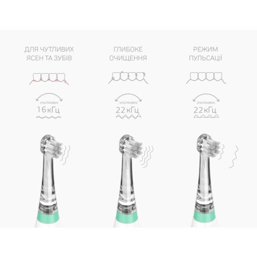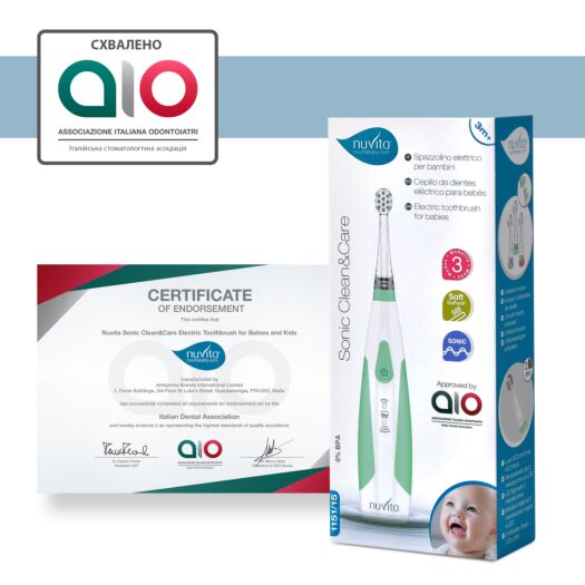 Стоматологи стверджують, що догляд за ротовою порожниною дитини має починатися з появою в неї першого зуба. Sonic Clean&Care - це інноваційна електрична зубна щітка, спеціально розроблена для дітей віком від 3 місяців до 5 років, щоб допомогти батькам привчити дитину до щоденного чищення зубів. Завдяки унікальному вибору змінних насадок Sonic Clean&Care зубна щітка адаптується до потреб дитини в процесі її росту. Технологія Sonic (вибір кількості вібрацій на хвилину – 16 000 ~ 22 000) і 3 режими забезпечують глибоке й делікатне очищення зубної емалі, ясен, язика та ротової порожнини. Завдяки мікрорухам ця електрична зубна щітка набагато делікатніша та ефективніша, ніж будь-яка звичайна зубна щітка. Вона відрізняється безпечною, практичною, 100% водонепроникною конструкцією та тривалим терміном служби батарейки. Зубна щітка Sonic Clean&Care схвалена Італійською асоціацією стоматологів (AIO).