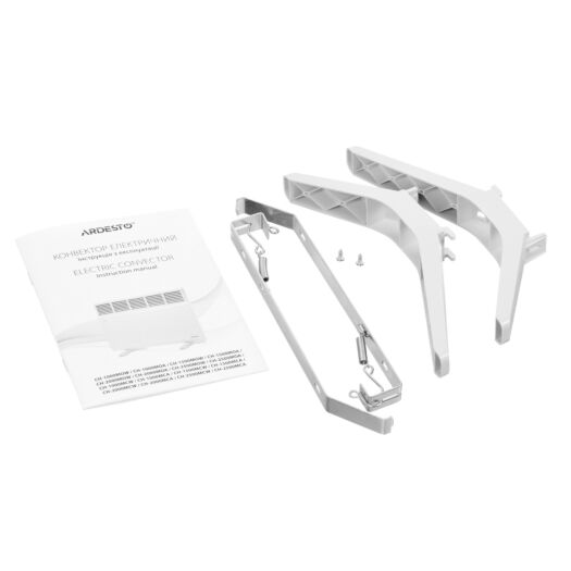 Ardesto CH-1000MCW використовує надійні комплектуючі – закритий обребрений нагрівальний елемент німецької компанії Eihenauer, а також італійський високоточний біметалічний термостат. Відсутність рухомих компонентів і продумана конструкція повністю виключає будь-які шуми при роботі. Механічне управління складається з клавіші вмикання із захисною накладкою та поворотного регулятора потужності. Конвектори Ardesto підтримують два типи монтажу – настінний і підлоговий. Кронштейни та опори поставляються в комплекті з обігрівачем.