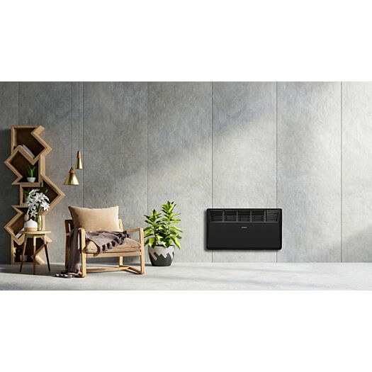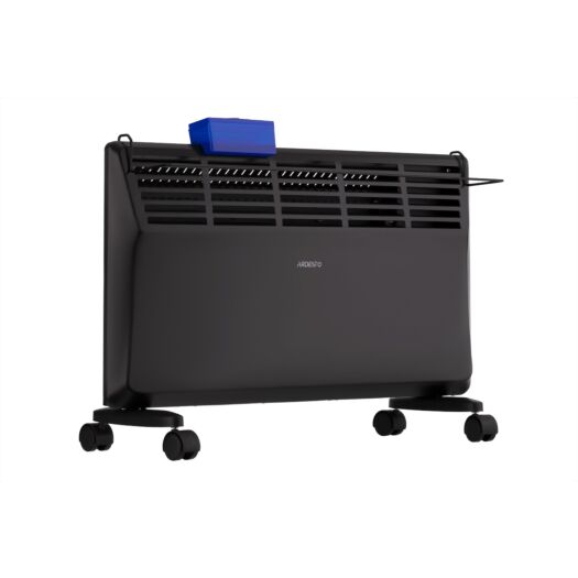Електричний конвектор із механічним керуванням чорного кольору, класом захисту IP20 і двома режимами потужності 1 000/2 000 Вт. Оснащений регульованим термостатом і розрахований на обігрів приміщень площею до 20 м2. Клас енергозахисту – перший. У цій моделі передбачено сушку та контейнер для природного зволоження повітря. Є захист від перегріву та датчик від перекидання. Ця модель обігрівача має два типи монтажу – настінний і підлоговий. Кронштейни та опори із коліщатками для підлогового встановлення постачають у комплекті з обігрівачем.