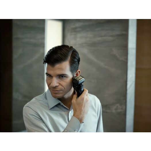 Призначений для ефективного догляду за найвибагливішими бородами, особливо на підборідді та шиї. 6 точних японських лез з нержавіючої сталі забезпечують ретельне гоління навіть з довшою щетиною бороди. Завдяки 6 лезам площа контакту зі шкірою збільшується, одночасно зменшуючи тиск на шкіру на 10%, що забезпечує більш гладке гоління та мінімізує подразнення шкіри.*