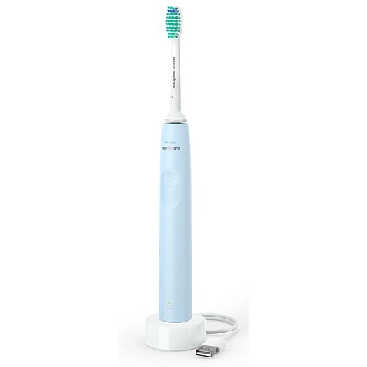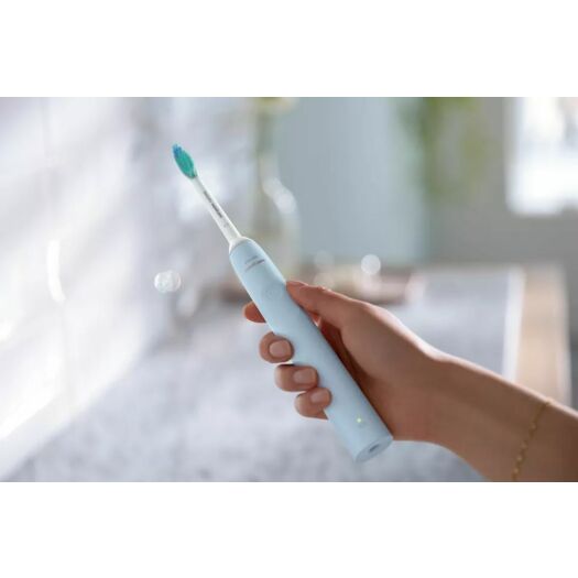 Philips Sonicare серії 2100 Звукова електрична зубна щітка. Унікальна технологія забезпечує потужне, але дбайливе очищення. До 3 разів краще видалення нальоту порівняно з ручною зубною щіткою. Безпечний і щадний у використанні. Оптимізуйте чищення зубів за допомогою SmarTimer і QuadPacer. Ергономічний дизайн дозволяє легко тримати зубну щітку та використовувати її.
