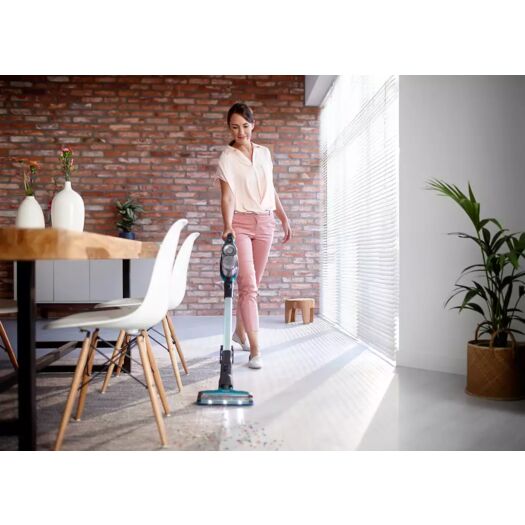Philips FC6904/01 - бездротовий пилосос 3-в-1. Наша потужна насадка з можливістю всмоктування на 360° швидше захоплює пил та бруд з усіх сторін. Від твердої підлоги до килимів – кожен рух не є даремним. Унікальна система прибирання та миття може впоратися з різними типами бруду одночасно.