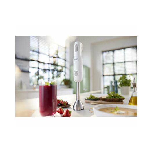 Завдяки потужному двигуну та унікальній ергономічній конструкції новий ручний блендер Daily пропонує швидке та ефективне змішування одним натисненням кнопки, щоб Ви могли без зайвих зусиль щодня готувати корисні домашні страви.