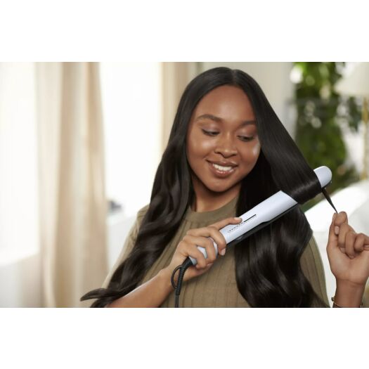 Укладайте волосся за допомогою технології ThermoShield. Для сталої температури від коренів до кінчиків волосся, меншого пошкодження надмірним теплом і здорового вигляду волосся. Підсилюйте блиск волосся завдяки вдвічі більшій кількості іонів для створення різноманітних чудових зачісок без скуйовдження.