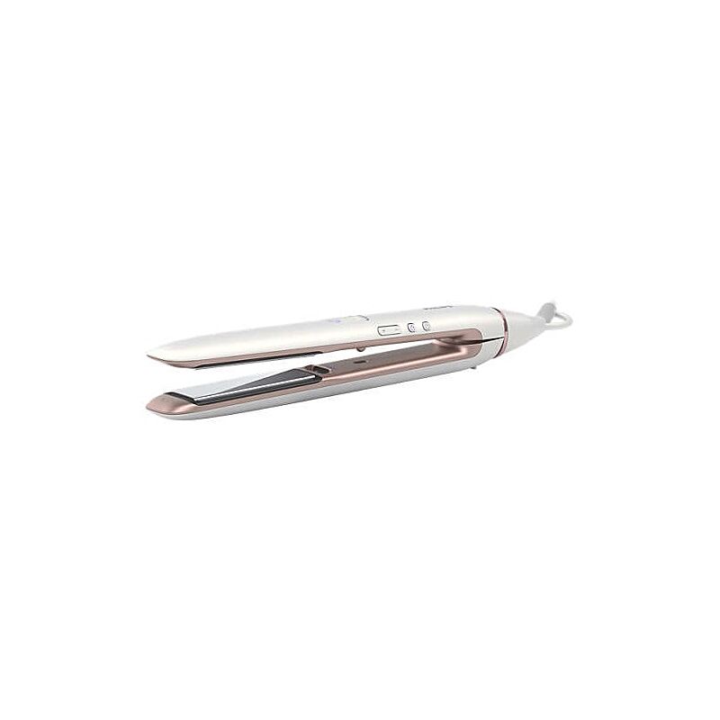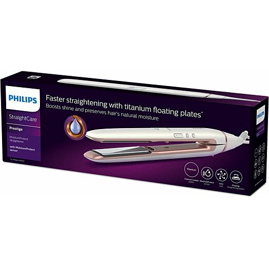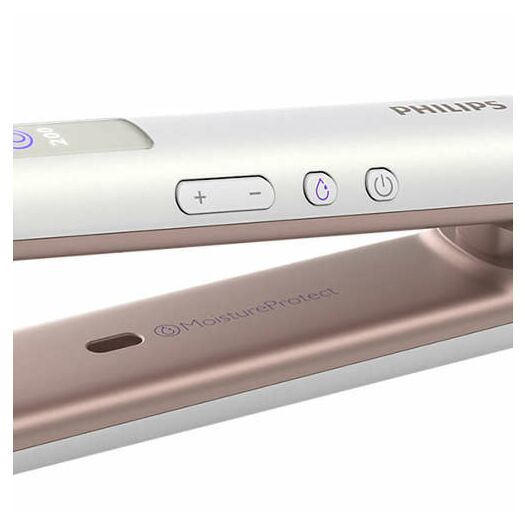 Випрямляч для волосся MoistureProtect з титановими пластинами для більш швидкого і ефективного випрямлення. Датчик перевіряє стан волосся 30 раз в секунду і підбирає оптимальну температуру, не пересушує волосся і зберігаючи природну вологу.