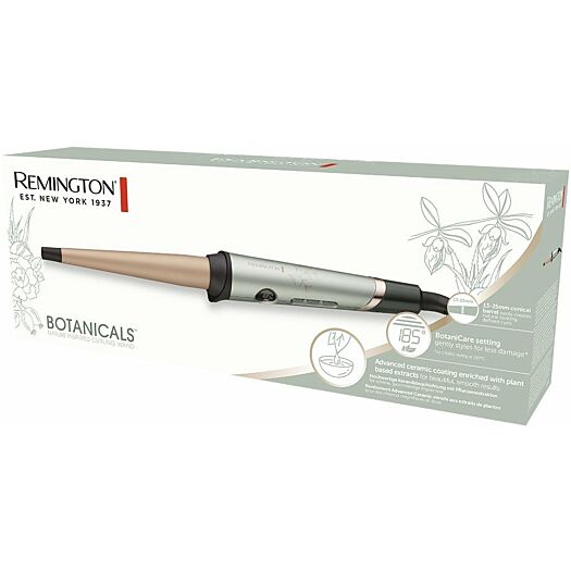 Плойка Botanicals має вдосконалений циліндр з керамічним покриттям з мікрокондиціонерами, наповненими рослинними екстрактами, які надають волоссю гладкості та блиску, а також функцію BotaniCare Temperature, яка допомагає захистити волосся, укладаючи його при нижчій температурі 185°C, щоб менше пошкоджувати його. Ми використали елементи, що сприяють росту волосся, знайдені в природі, і вклали їх у плойку Remington Botanicals Curling Wand. Щіпці оснащено нашим щадним режимом BotaniCare Temperature Setting, який дає можливість укладати волосся за нижчої температури.