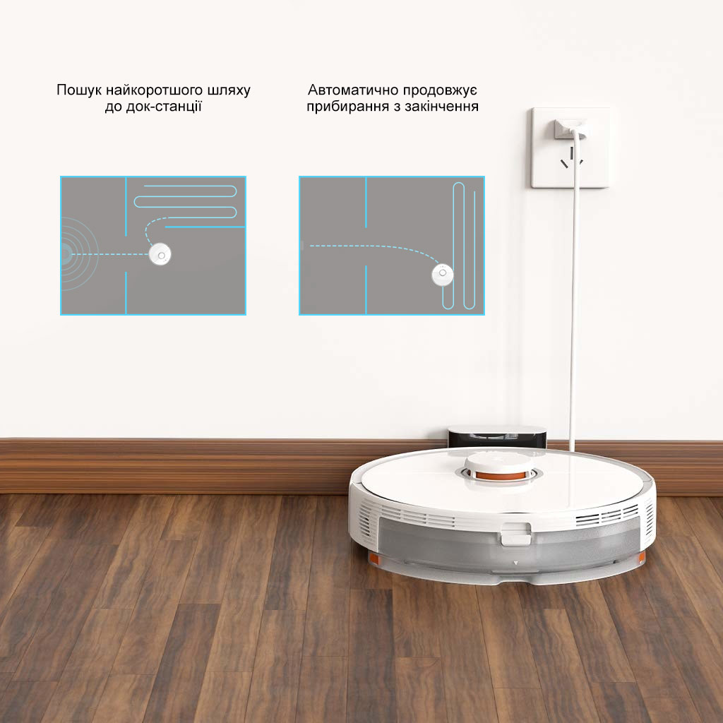 Якщо заряд батареї знизився до критичного мінімуму під час прибирання, пилосос автоматично відправляється на док-станцію найкоротшим маршрутом для поповнення заряду саме настільки, щоб закінчити прибирання.