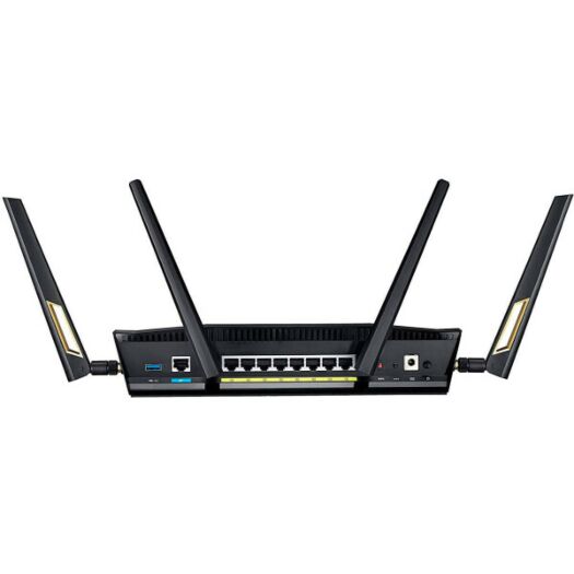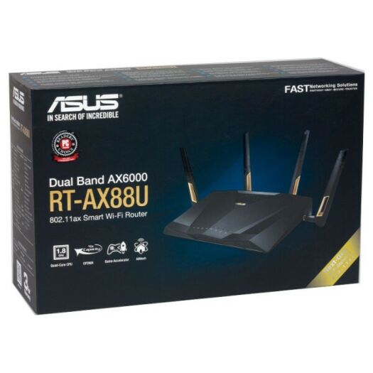 Asus RT-AX88U - lвухдіапазонний маршрутизатор стандарту Wi-Fi 802.11ax (AX6000) з технологіями MU-MIMO і OFDMA, інформаційної захистом Aiprotection на базі технологій Trend Micro, системою геймерского прискорення WTFast і адаптивним керуванням трафіком.