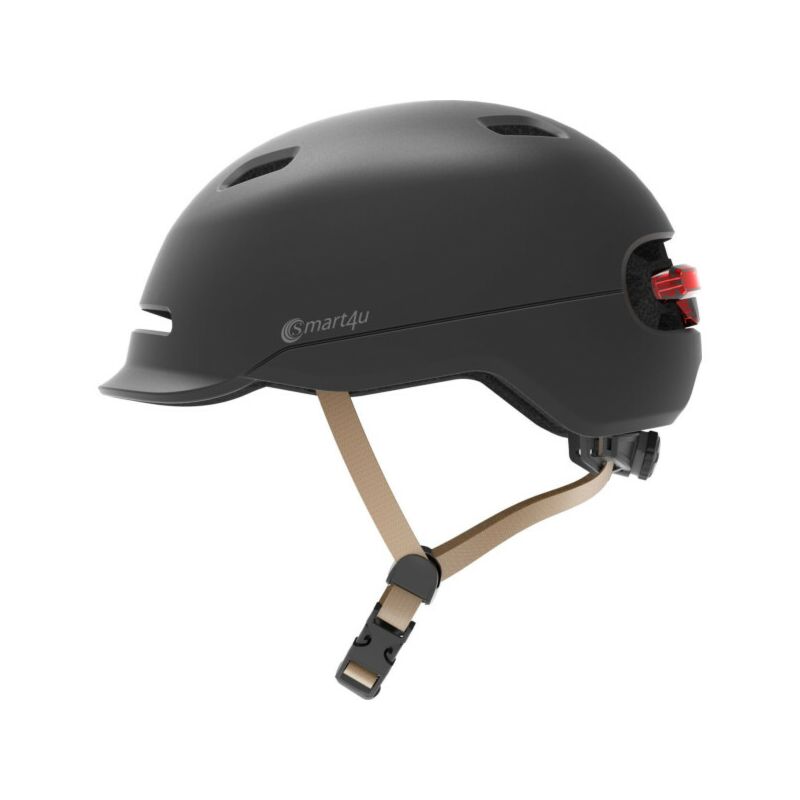 Розумний захисний шолом Smart4u виготовлений з комбінації пінополістиролу (EPS) та полікарбонату (PC), і оснащений світловою сигналізацією, яка сповіщає учасників дорожнього руху про те, що ви переміщуєтесь по проїжджій частині. Шолом максимально захищає голову від травм у разі падіння або зіткнення, при цьому зберігає повну свободу рухів. До того ж шолом має природну систему вентиляції, яка перешкоджає перегріву голови. У шолом інтегровано 7 світлодіодів, які автоматично активується як тільки на вулиці помітно потемніє. Світлодіоди розміщені таким чином, щоб забезпечити видимість індикації в діапазоні 180 градусів. Система кріплення за допомогою Y-образних ремінців, застібаються на підборідді, зафіксує шолом в надійному стані, не викликаючи почуття якогось дискомфорту. Smart4u оснащений вбудованим акумулятором, якого вистачить на 1.5 доби активної роботи або до 180 годин в режимі очікування. Шолом оснащений магнітним роз'ємом для поповнення заряду батареї. Не варто затягувати ремені дуже щільно до шкіри. Відстань від ременя до голови має становити приблизно 1.5 см. Розмір шолома M (54-58 см), розмір шолома L (57-61). Щоб дізнатися, чи підходить він саме Вам, виміряйте окружність голови на 2 см вище рівня брів.