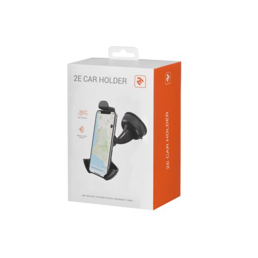 Автомобільний тримач для мобільних пристроїв. Для кріплення у авто використовується надійна присоска з фіксатором, а для утримання мобільних пристроїв передбачено зажим. Конструкція підтримує регулювання нахилу.