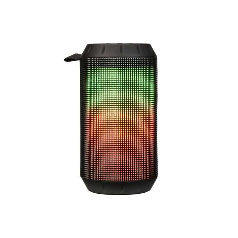 Спортивна портативна аудіоколонка має вдосконалену конструкцію із захистом від бризок за стандартом IPX4 та металевий карабін для зручного транспортування. Корпус повністю захищено від потрапляння води, до рознімів для з’єднань можна дістатись відкривши спеціальну кришку. Вага пристрою складає лише 190 г і в поєднанні з невеликими розмірами демонструє справжню компактність та мобільність. Також наявне LED-підсвічування, що працює по типу еквалайзера і додає вражень від використання портативної акустичної системи.