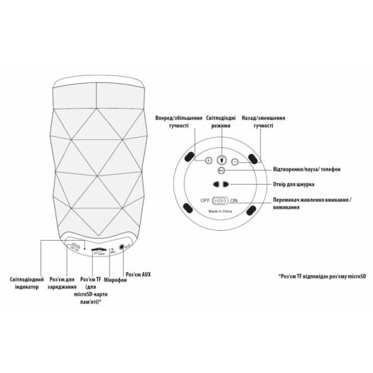 У компактній безпровідній акустичній системі поєднано стильний дизайн та якісне звучання (до 6 годин). Завдяки невеликим розмірам та малій вазі - лише 360 г, пристрій зручно транспортувати й експлуатувати. Колонка підтримує багато типів з’єднань та має слот для microSD-карти. На довершення, пристрій оснащено LED-підсвічуванням, що працює у двох режимах і створює особливу атмосферу навколо.