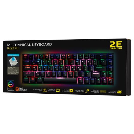 2E Gaming Клавіатура ігрова KG370 RGB 68key Gateron Blue Switch USB Black Ukr