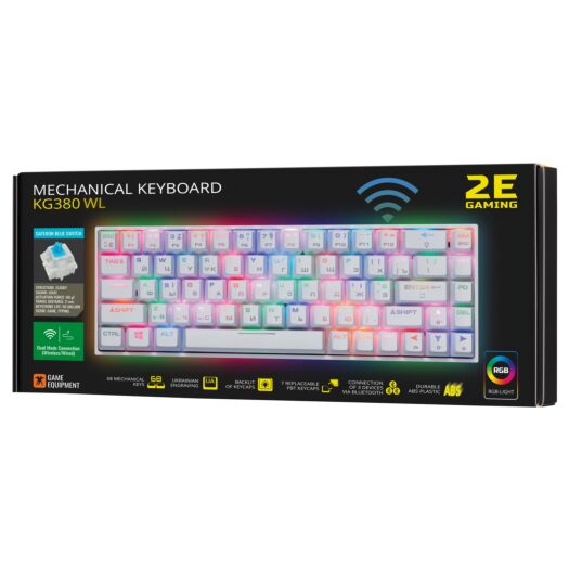 2E Gaming Клавіатура ігрова KG380 RGB 68key Gateron Blue Switch BT/USB White Ukr