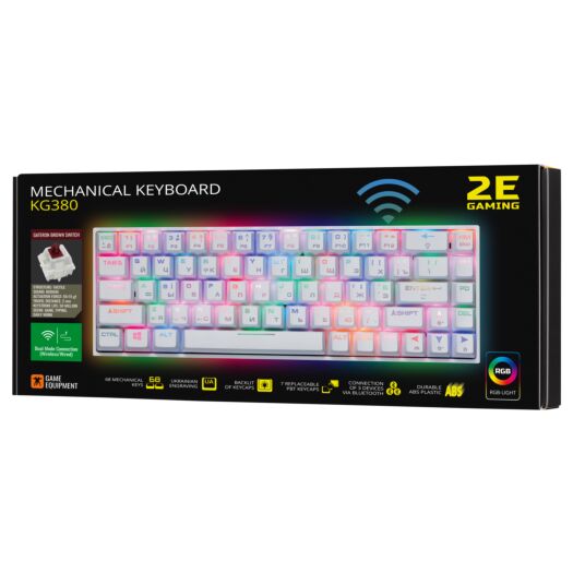 2E Gaming Клавіатура ігрова KG380 RGB 68key Gateron Brown Switch BT/USB White Ukr