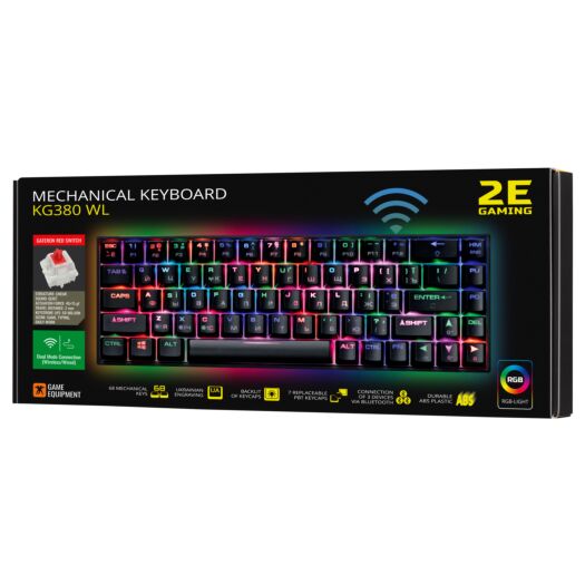 2E Gaming Клавіатура ігрова KG380 RGB 68key Gateron Red Switch BT/USB Black Ukr