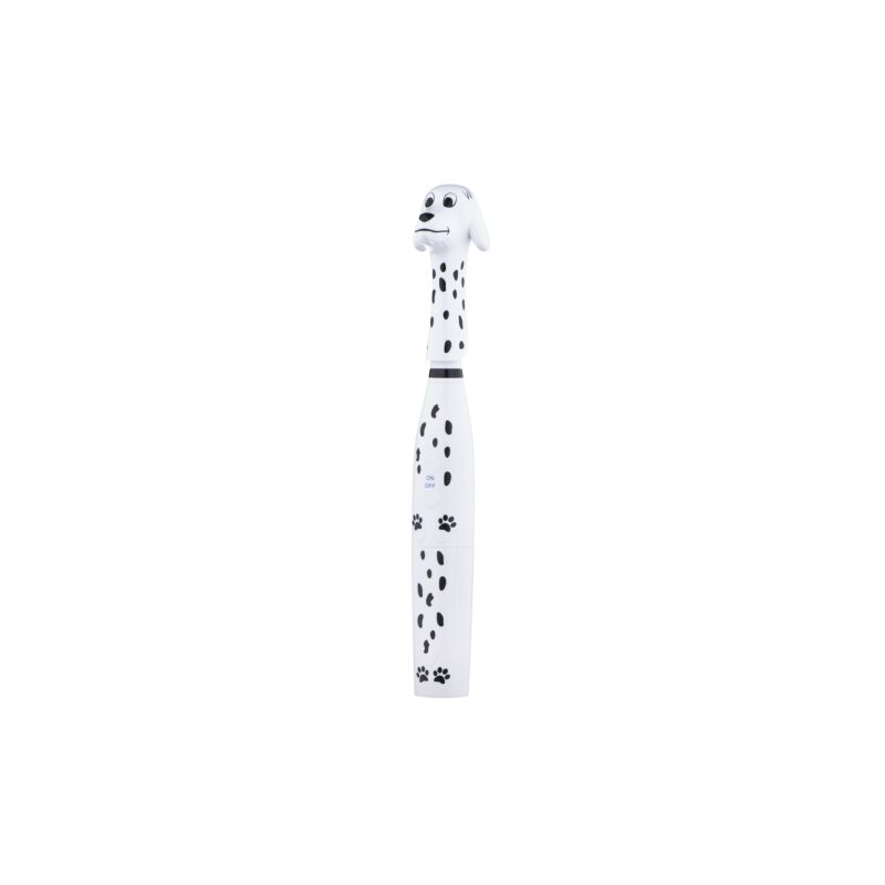 Дитяча електрична зубна щітка ARDESTO ETB-003DOG із унікальним дизайном у вигляді милого песика-далматинця перетворює процес чищення зубів на захопливу гру. М’яка щетина ніжно очистить зуби дитини, забезпечуючи ретельний та бережний догляд. Клас захисту IPX6 – щітку можна мити під струменем води. Працює від двох батарейок стандарту ААА, їх ресурсу вистачить на декілька тижнів безперервної роботи. Для дітей віком від 5 років.