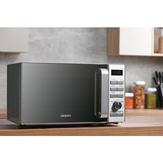 ARDESTO Мікрохвильова піч, 20л, електр.управл., 700Вт, дисплей, відкр.ручкою, сріблястий