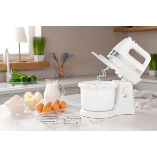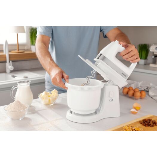 ARDESTO Міксер з чашею Ardesto KSTM-500W - 500Вт/5 швидк.+турбо/ 2 віничка/2 гачка/біли