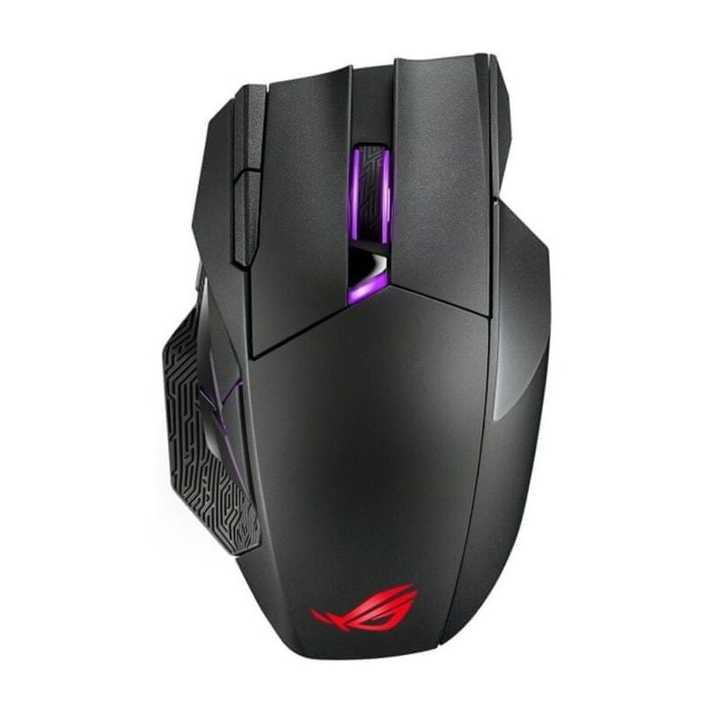 Ігрова миша з двома режимами підключення (провідний і 2,4 ГГц) з магнітною підставкою для зарядки, 12 програмованими кнопками, високоточним сенсором ROG з дозволом 19 000 точок на дюйм, ексклюзивними роз'ємами для перемикачів, перемикачами ROG Micro Switches, кабелем ROG Paracord і підсвічуванням Aura Syncura RGB