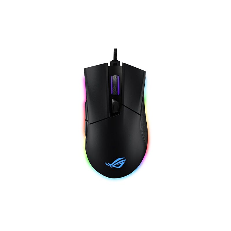 Ергономічна оптична ігрова миша! Оптимізована для ігор жанру FPS, з можливістю заміни перемикачів, повнокольоровим підсвічуванням Aura Sync і кнопкою швидкого перемикання чутливості.