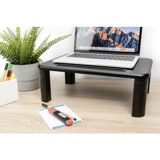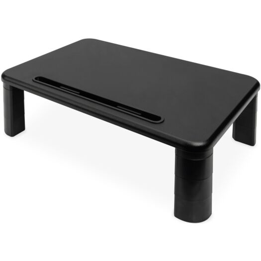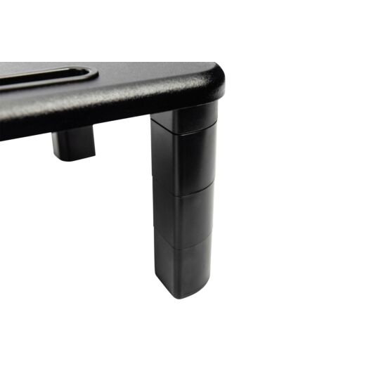 З ергономічним збільшенням монітора ви отримуєте просте використання продукту, за допомогою якого ви можете індивідуально оформити свій стіл. Завдяки модульній конструкції можна легко змінювати висоту стенду, додаючи або видаляючи опорні елементи. У передній частині також є тримач для смартфона та планшета з отворами для зарядки або з'єднувальних кабелів.