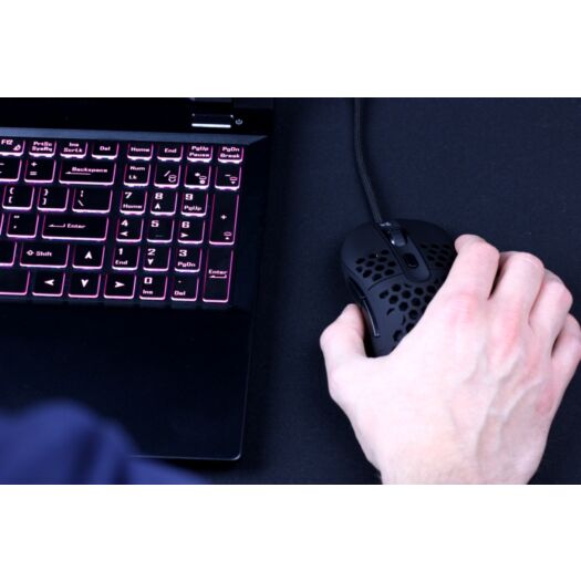 В умовах жорсткої конкуренції на киберспортівних полях і рингах, перемоги не досягти, сподіваючись лише на гарні ідеї і сталеву рішучість. Потрібно відправити усіх у нокаут! Вважаємо, що наш перспективний боєць у ваговій категорії напівлегкій ігрових мишок допоможе досягти вам вершин успіху, притискаючи суперників до канатів. При вазі в 69 грам цей майбутній чемпіон оснащений потужним арсеналом чудових правих і лівих хуків - високоякісних перемикачів Huano. У той же час його рух по рингу контролюється одним з кращих оптичних сенсорів в світі - PixArt.