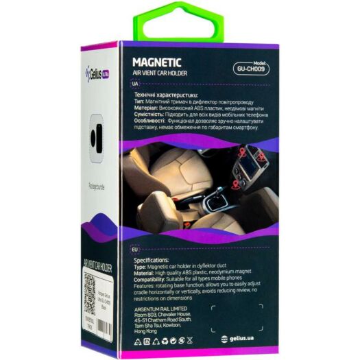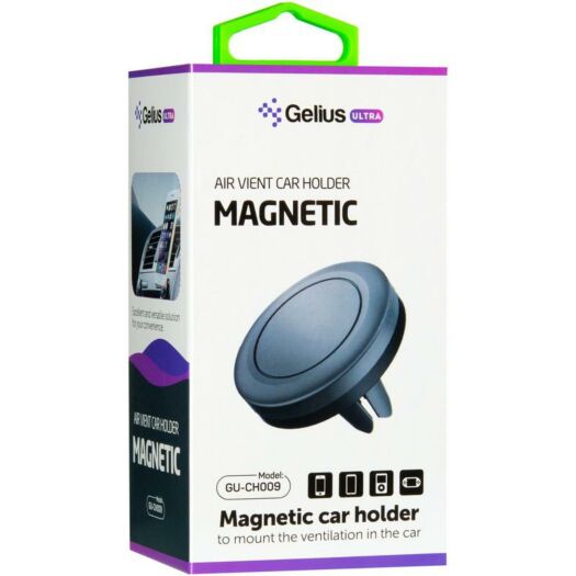 Gelius Ultra GU-CH009 — прогумовані вусики не дряпають поверхню й надійно фіксують аксесуар. Тримач обладнаний потужними магнітами, за допомогою яких мобільний пристрій кріпиться до холдера. Перевагою цієї моделі є її універсальність.