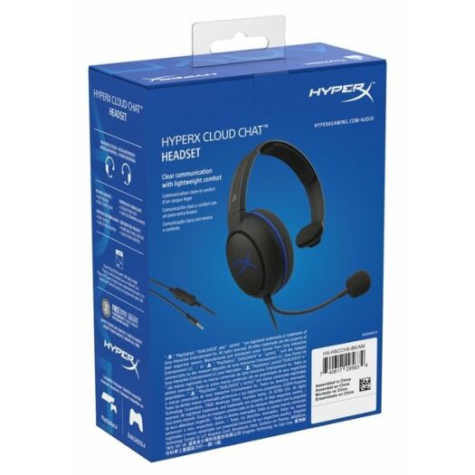 Гарнітура HyperX Cloud Chat for PS4 офіційно ліцензована для використання з ігровою консоллю PlayStation4 ™. Конструкція гарнітури HyperX Cloud Chat for PS4 забезпечують можливість безперешкодно спілкуватися з іншими гравцями і одночасно чути звуковий супровід гри з телевізора. Гарнітура HyperX Cloud Chat for PS4 масою всього 123 грами оснащена м'якими амбушурами і накладкою з поролону, зручною для тривалих ігрових сесій. Мікрофон можна повернути в будь-яку сторону, і гарнітуру можна з однаковим комфортом надіти на обидва вуха. Мікрофон з поп-фільтром і пасивним шумозаглушенням знижує рівень фонового шуму і забезпечує високу якість передачі голосу. Управління гучністю звуку і вимикач мікрофона розташовані прямо на кабелі і завжди будуть під рукою.