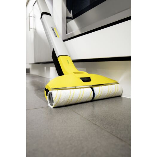 Електрошвабра Karcher EWM 2, що легко видаляє з підлоги плями або бризки, дозволяє обійтися без відра та швабри. При цьому вона на 20% перевершує швабру як засіб для прибирання. Час роботи від 1 заряду становить близько 20 хв. Для видалення з підлоги плям або бризок зовсім не обов'язково із зусиллям терти його шваброю та переносити важке відро з водою. Набагато зручнішим рішенням є апарат для вологого прибирання підлоги EWM 2, оснащений двома бачками і роликовими щітками, що обертаються. Щітки безперервно зволожуються чистою водою та очищаються від бруду, який збирається у бачок для брудної води. Завдяки цьому на 20% підвищується ефективність прибирання порівняно з використанням звичайної швабри.