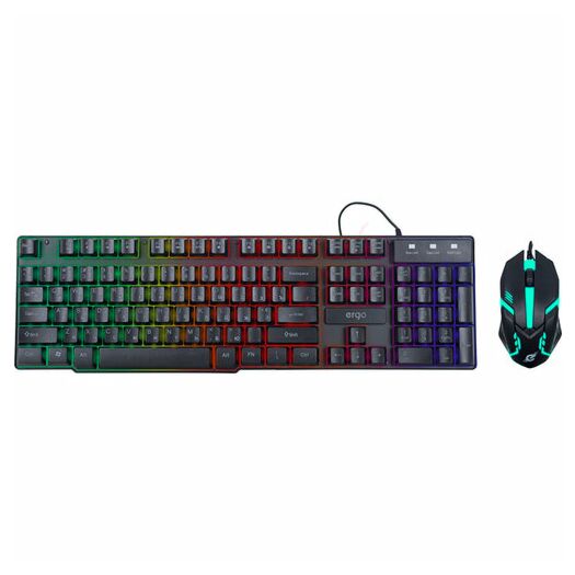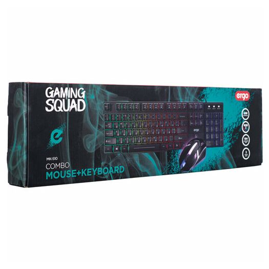 Комплект комп'ютерна миша + клавіатура ERGO MK-510 відмінно підійде геймерам і тим, хто цінує стиль та комфорт. Дротова ігрова клавіатура з триколірним підсвічуванням і дротова мишка складають відмінний IT-набір, який забезпечить класну гру та продуктивну роботу.