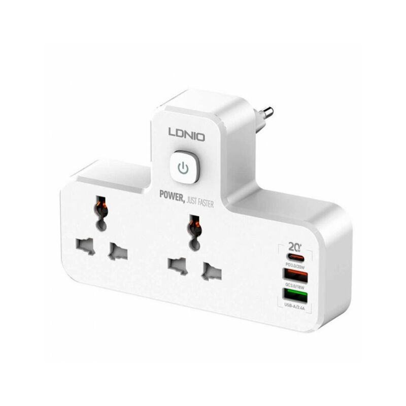 Мережевий перехідник із нічником LDNIO SC2311 — функціональний аксесуар, який стане ідеальним вибором для під'єднання до настінної розетки десь над робочим столом або тумбочкою, де він буде освітлювати всі предмети, що містяться під ним, і ґаджети, що заряджаються від нього. Стильний, ергономічний дизайн перехідника дає змогу йому вписатися в будь-який сучасний інтер'єр і забезпечить користувачеві максимально комфортну повсякденну експлуатацію. Корпус пристрою якісно зібраний, виготовлений із міцно пластику з приємною на дотик поверхнею. На його задній панелі є мережева вилка, на передній — дві універсальні розетки із захистом від дітей, пара USB-портів і роз'єм Type-C, а на нижній грані — розсіювач вбудованої лампи. Роз'єм Type-C підтримує швидке заряджання за протоколом PD з максимальною потужністю 20 Вт, один з USB-технологій QC з потужністю до 18 Вт, а другий — заряджання із силою струму до 2.4 А. Модель обладнана механічною кнопкою для активації подавання живлення і сенсорним керуванням.