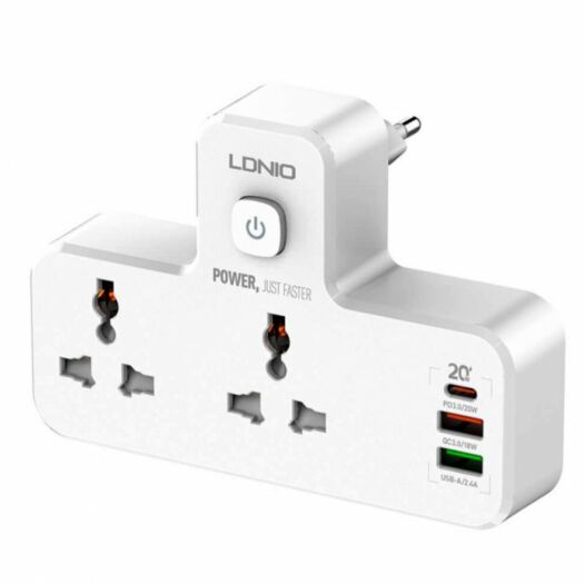 ОписаниеМережевий Перехідник із Нічником LDNIO SC2311 2 port/1PD/1 QC 3.0/1 USB/ 2 PSocket/ Led lamp (White)