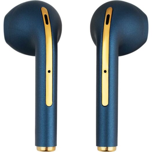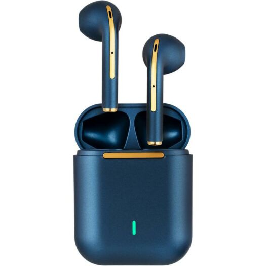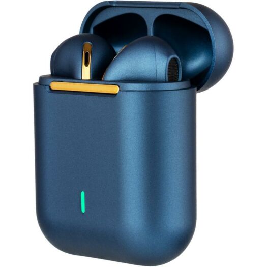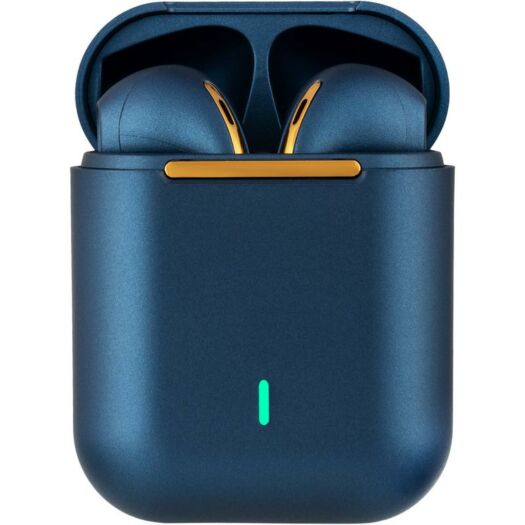 TWS навушники - це не тільки про крутий звук, а й про стиль власника. У вашому розпорядженні три кольорових варіанти: Black, Blue, Green. Модель знайшла яскравий зовнішній вигляд завдяки золотистому покриттю деталей на корпусі зарядного кейса і самих tws, глянцевим відтінком кольору, мінімалістичним дизайном. На зарядному кейсі є LED індикатор зарядки.