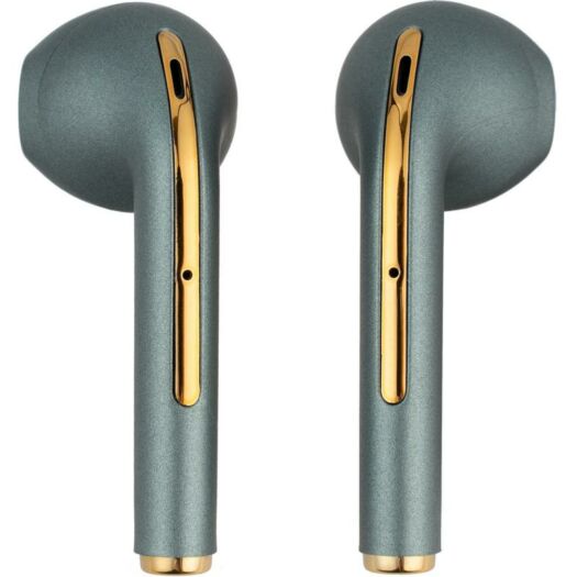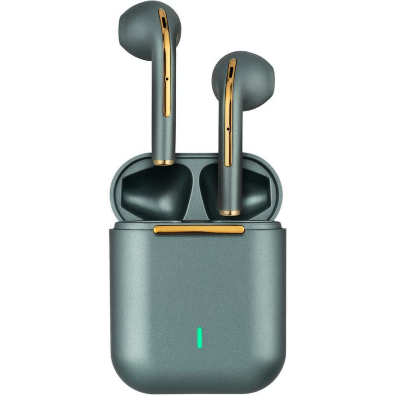 TWS навушники - це не тільки про крутий звук, а й про стиль власника. У вашому розпорядженні три кольорових варіанти: Black, Blue, Green. Модель знайшла яскравий зовнішній вигляд завдяки золотистому покриттю деталей на корпусі зарядного кейса і самих tws, глянцевим відтінком кольору, мінімалістичним дизайном. На зарядному кейсі є LED індикатор зарядки.