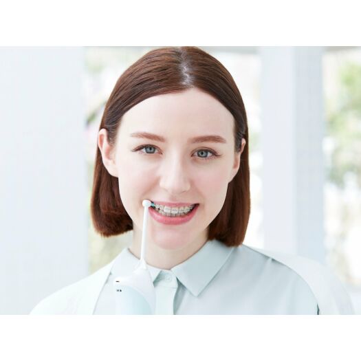 Нове рішення для догляду за ротовою порожниною для людей з брекетами. Насадка за допомогою струменя води вимиває залишки їжі, а м'яка щетина видаляє наліт навколо брекетів. Догляд за порожниною рота під час ортодонтичного лікування завжди був складний. Однак тепер люди з брекетами можуть доглядати за ротовою порожниною швидко, легко і гігієнічно за допомогою всього одного пристрою.