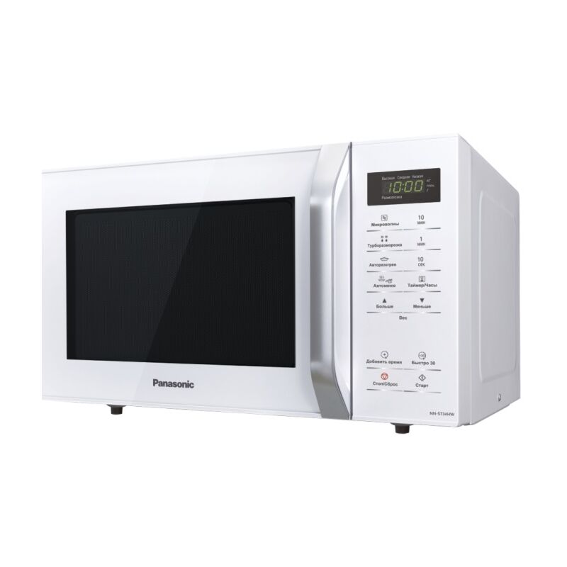 Мікрохвильова піч NN-ST34HWZPE потужністю 800 Вт. 12 автоматичних програм приготування. Внутрішнє покриття з жароміцної емалі. Таймер, РК дисплей, блокування від дітей