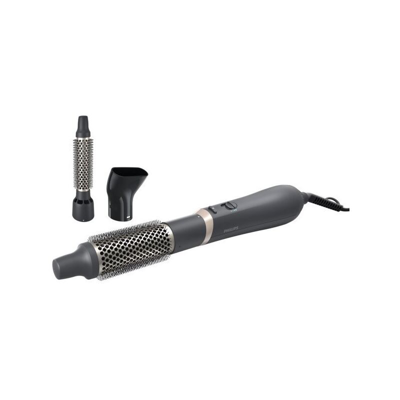 Фен-щітка Philips BHA301/00. Одночасне сушіння та укладання. Фен-щітка Philips Essential дозволяє створювати чудові природні зачіски, одночасно доглядаючи волосся. Три насадки підходять як для довгого, так і для короткого волосся, тому можна насолоджуватися його легким укладанням. Потужність 800 Вт. Фен-щітка з потоком повітря потужністю 800 Вт для делікатного сушіння та укладання. Добивайтеся результатів, як із салону, щодня.