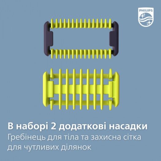 Підрівнювання і гоління волосся різної довжини без зусиль. Philips OneBlade Pro - електростанок для обличчя та тіла підстригає, надає форми й голить волосся будь-якої довжини. Надається одне лезо для обличчя й одне із захисною сіткою для тіла. Забудьте про використання різних інструментів. OneBlade – це універсальне рішення.