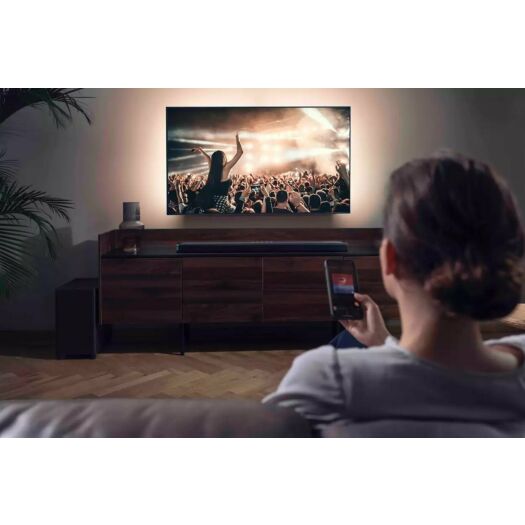 Цей саундбар створює захоплюючий звук. 5.1.2-канальна система забезпечить об'ємне, глибоке та насичене звучання музики, спецефектів та діалогів.