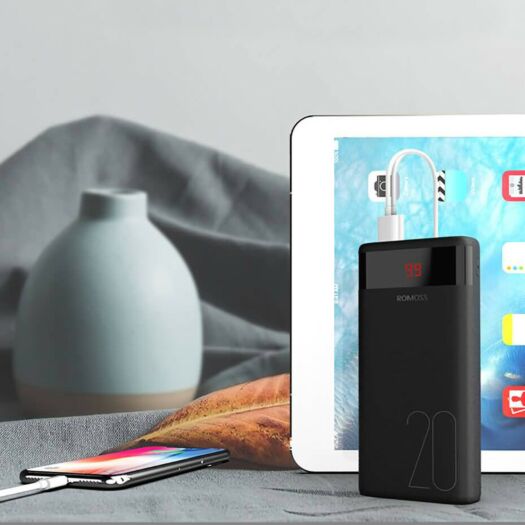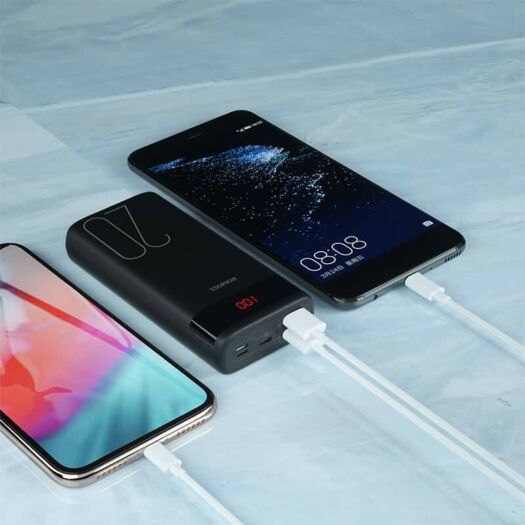 Ares 20 має три входи для живлення. Є можливість зарядити PowerBank за допомогою оригінального кабелю передачі даних вашого телефону. Вам не потрібно носити додатковий кабель для заряджання Romoss Ares 20. Також він має підтримку зарядки двох пристроїв одночасно.