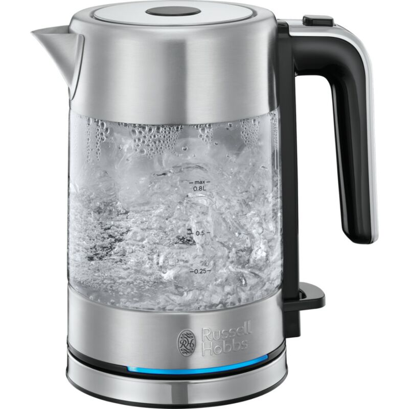Чайник з нової лінійки приладів для кухні Compact Home був створений спеціально для невеликих квартир, гуртожитків і просто місць, де простір завжди в пошані. 24191-70 поєднує в собі сучасний стиль і чудову продуктивність, зберігаючи при цьому ваш простір на кухні.Корпус чайника виконаний з високоякісного скла преміум-класу з акцентами з полірованої сталі. Компактні розміри і оптимальна ємність 0,8 л роблять його ідеальним приладом для сімейних пар або тих, хто живе один.Будь то кава, щоб почати свій ранок, чай після довгого робочого дня або трохи води для приготування - цей компактний чайник з легкістю впорається з будь-яким завданням. Потужність чайника 2400 Вт дозволить приготувати улюблені напої за лічені хвилини, що особливо корисно вранці, коли кожна секунда важлива. А завдяки ідеальній формі носика жодної краплі не проллється.