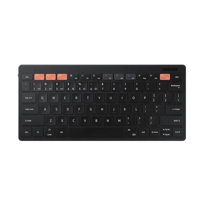 Універсальна бездротова клавіатура Samsung Smart Keyboard Trio 500 дозволяє підключити одночасно до трьох мобільних пристроїв або ПК. Насолоджуйтеся широкої сумісністю і зручністю роботи, оскільки для перемикання між смартфонами, планшетами та іншими пристроями з підтримкою Bluetooth, підключеним до даної клавіатурі, досить одного натискання клавіші.