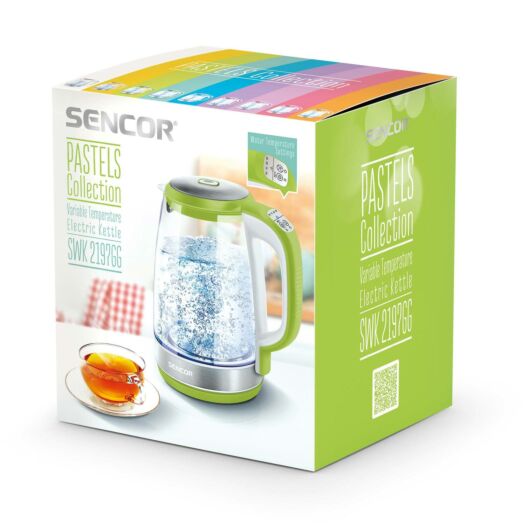 Електрочайник Sencor SWK2197GG підтримує температуру протягом 30 хвилин, оснащений фільтром бруду і вапняного нальоту, світлодіодним підсвічуванням і потрійною системою безпеки.